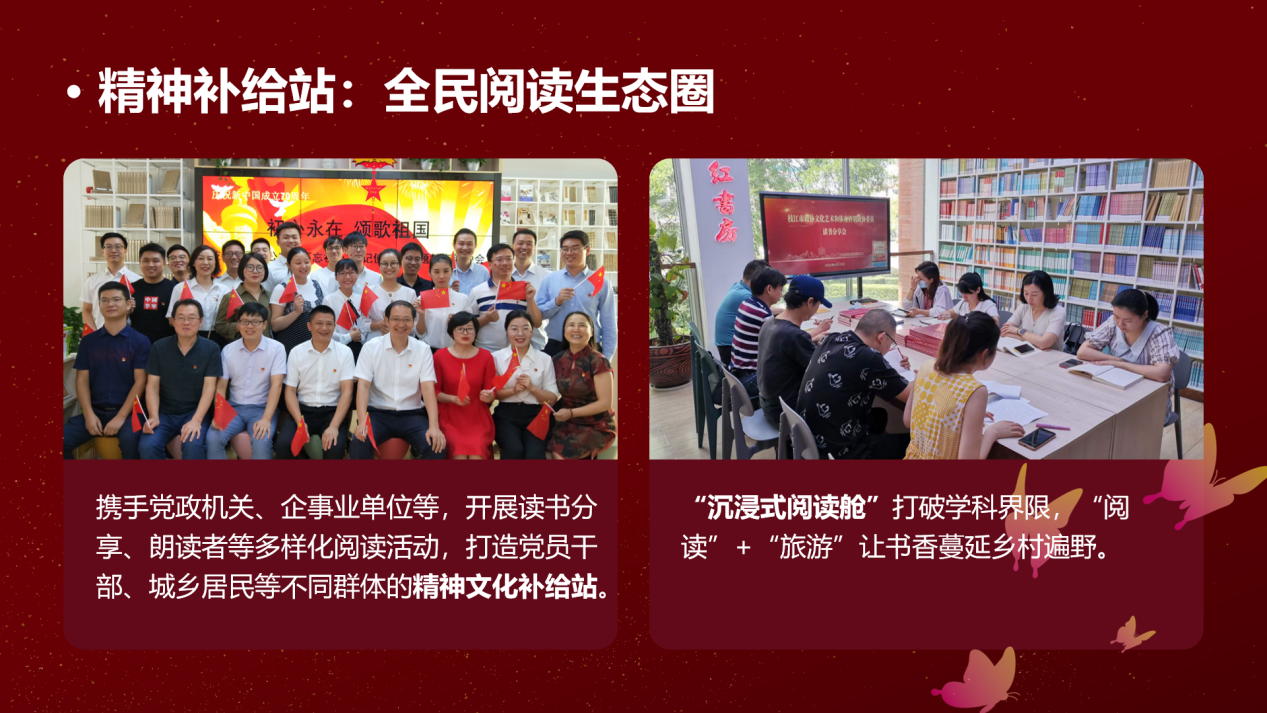 新閱讀:全民閱讀的領(lǐng)航者。作為“書香荊楚 文化湖北”的踐行者,枝江書城構(gòu)建起多元閱讀空間。針對親子家庭,“慧悅讀”項目讓親情在書香中流淌;面向傳統(tǒng)文化愛好者,“閱界大講壇”讓楚文化煥發(fā)新生;攜手黨政機(jī)關(guān)企事業(yè)單位開展讀書分享、朗讀者活動,打造黨員干部、城鄉(xiāng)居民精神補(bǔ)給站;“沉浸式閱讀艙”打破學(xué)科界限,“閱讀+旅游”讓書香蔓延鄉(xiāng)村?!笆奈濉逼陂g,500余場活動讓閱讀成為連接知識、情感與創(chuàng)造的橋梁。