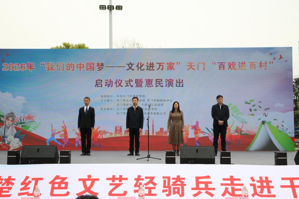 4月3日上午,2026年天門市“我們的中國夢·文化進萬家”活動啟動儀式在干驛鎮(zhèn)全民健身中心舉行。此次活動由天門市文旅局、新華書店天門市分公司、市融媒體中心及干驛鎮(zhèn)人民政府聯(lián)合主辦。各方凝聚強大合力,以實際行動踐行文化惠民理念。市委常委、市委宣傳部部長楊寒,市政府副市長古玉麗,市文化和旅游局局長李碧及分公司經(jīng)理彭紅波等出席活動。