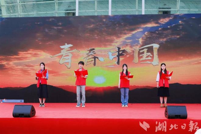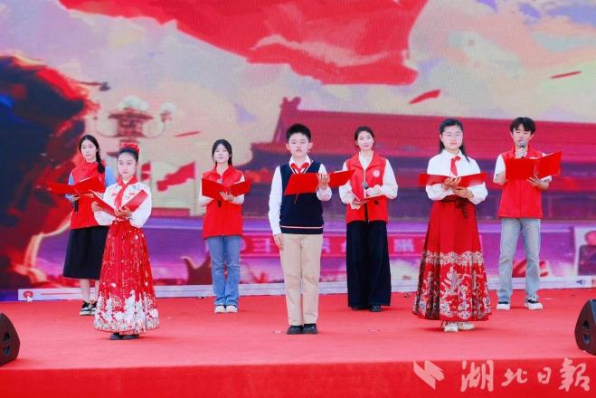研學(xué)結(jié)束后,學(xué)生們走上了2026長(zhǎng)江書市·武漢童書展首義廣場(chǎng)站的主舞臺(tái)。大學(xué)生與中小學(xué)生聯(lián)袂領(lǐng)誦、合誦《青春中國(guó)》《點(diǎn)贊中國(guó)》《可愛的中國(guó)》,用青春之聲禮贊祖國(guó)。情景劇《最后的家書》與跨年齡組的“紅色配音秀”等節(jié)目,讓紅色經(jīng)典在新時(shí)代語(yǔ)境下煥發(fā)出新活力。